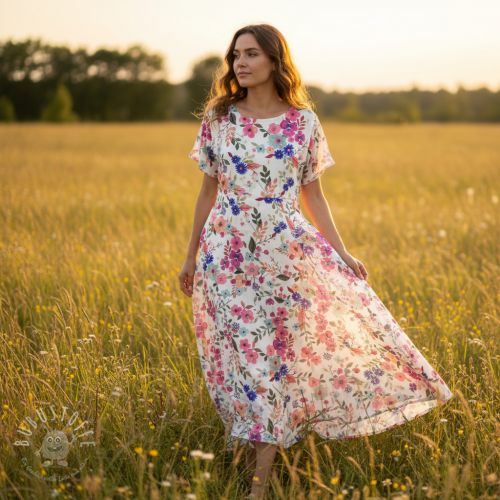 Viskosestoff LUREX Tossed flowers white digital print