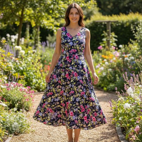 Viskosestoff RADIANCE Flower Uma navy digital print