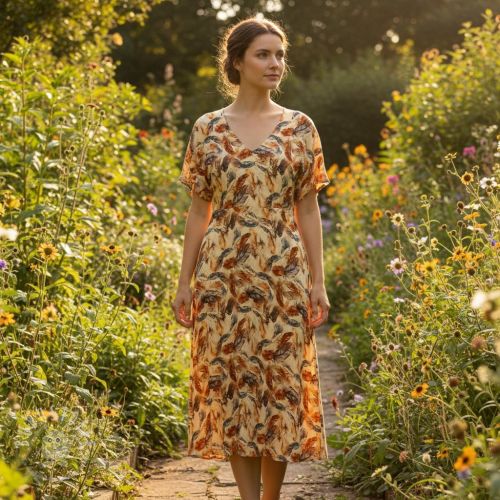 Viskosestoff RAYON POPLIN Feathers design C digital print