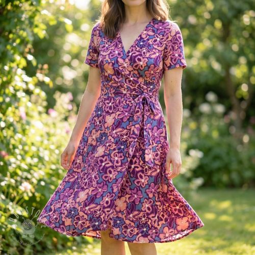 Viskosestoff STRETCH Flowers Junie purple