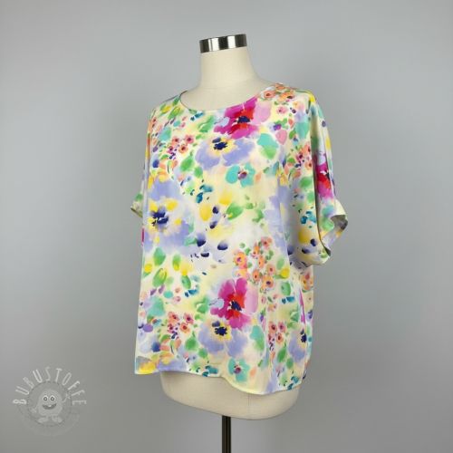 Viskosestoff STRETCH Watercolour flowers design B digital print